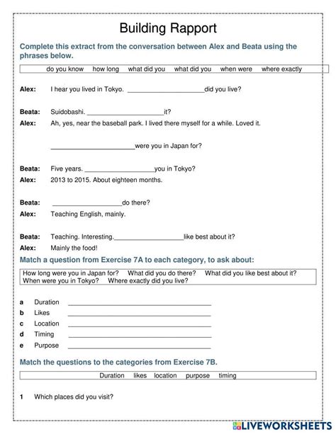 Rapport Building Worksheets Pdf. Topics include fair fighting, communication, conflict resolution, and relationship building. _____ helps to build rapport because it.
